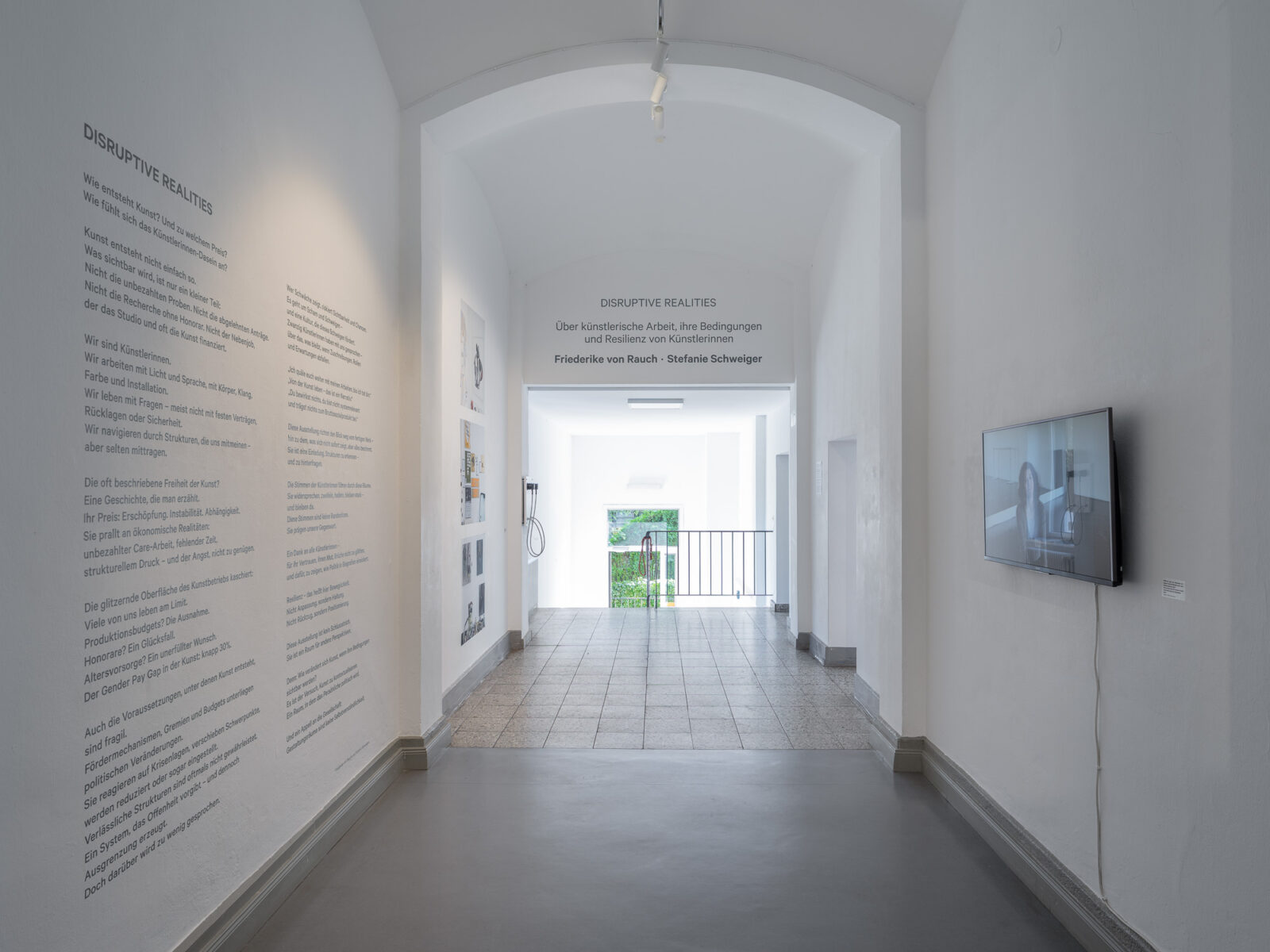 When the world begins to totter, art becomes a source of strength. With over 20 video interviews with artists from different generations and disciplines, Friederike von Rauch and Stefanie Schweiger combine their own works and texts to create a polyphonic picture of artistic reality - between precarity, invisibility and creative power. DISRUPTIVE REALITIES (On artistic work, its conditions - and the resilience of female artists) makes visible what often remains hidden: everyday struggles, resilience and the political dimension of artistic work. A plea for more justice - and for art as a medium of hope in times of crisis.